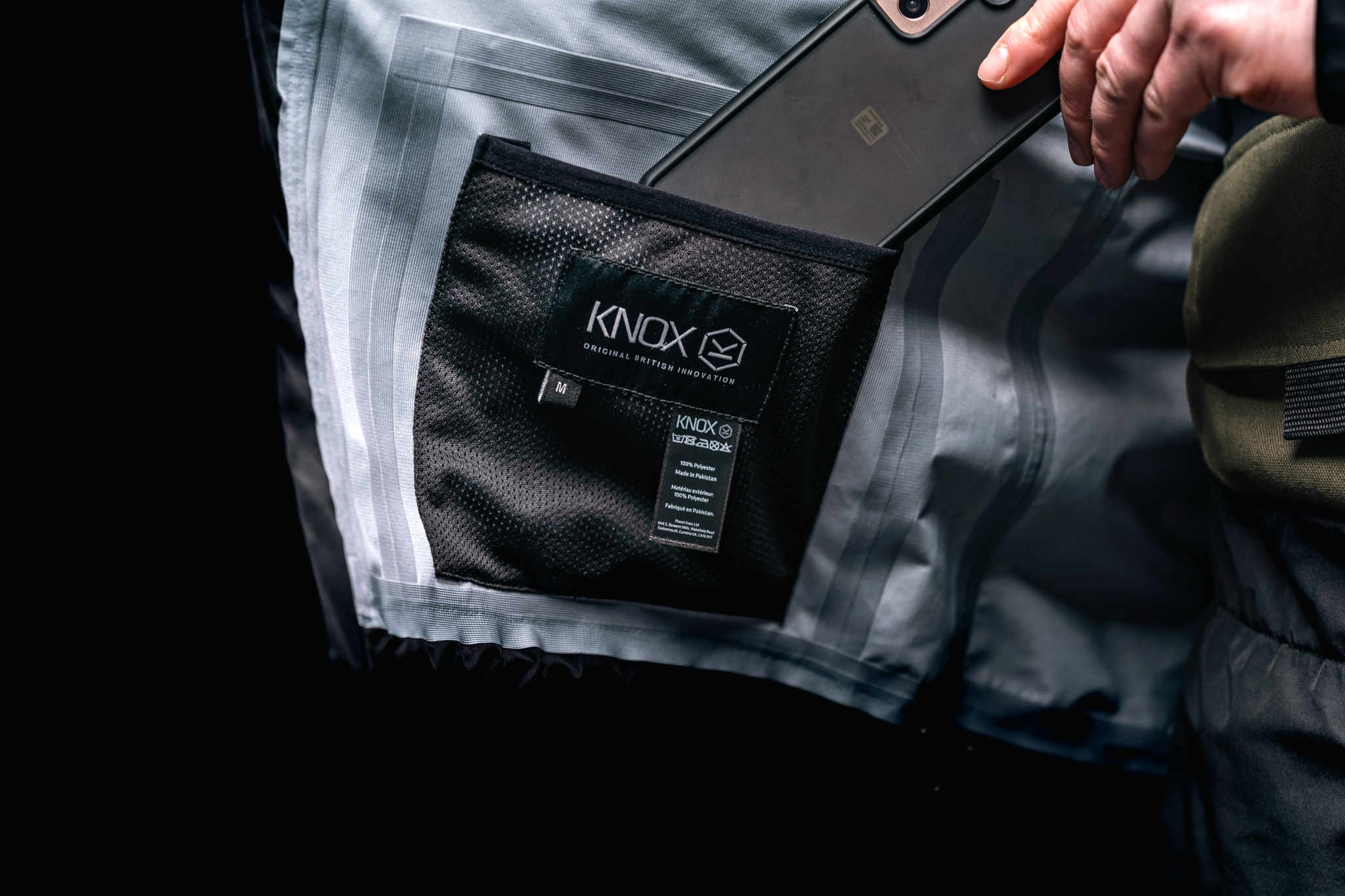 - High performance polyester tri-laminate fabric with waterproof and breathable 15K membrane.