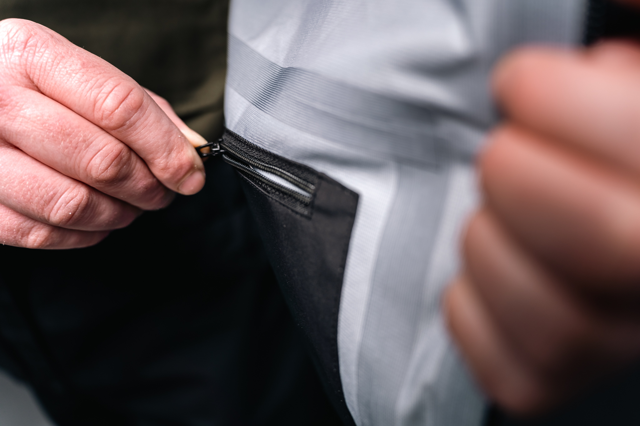 - Matt finish YKK Aquaguard zip with storm flap.