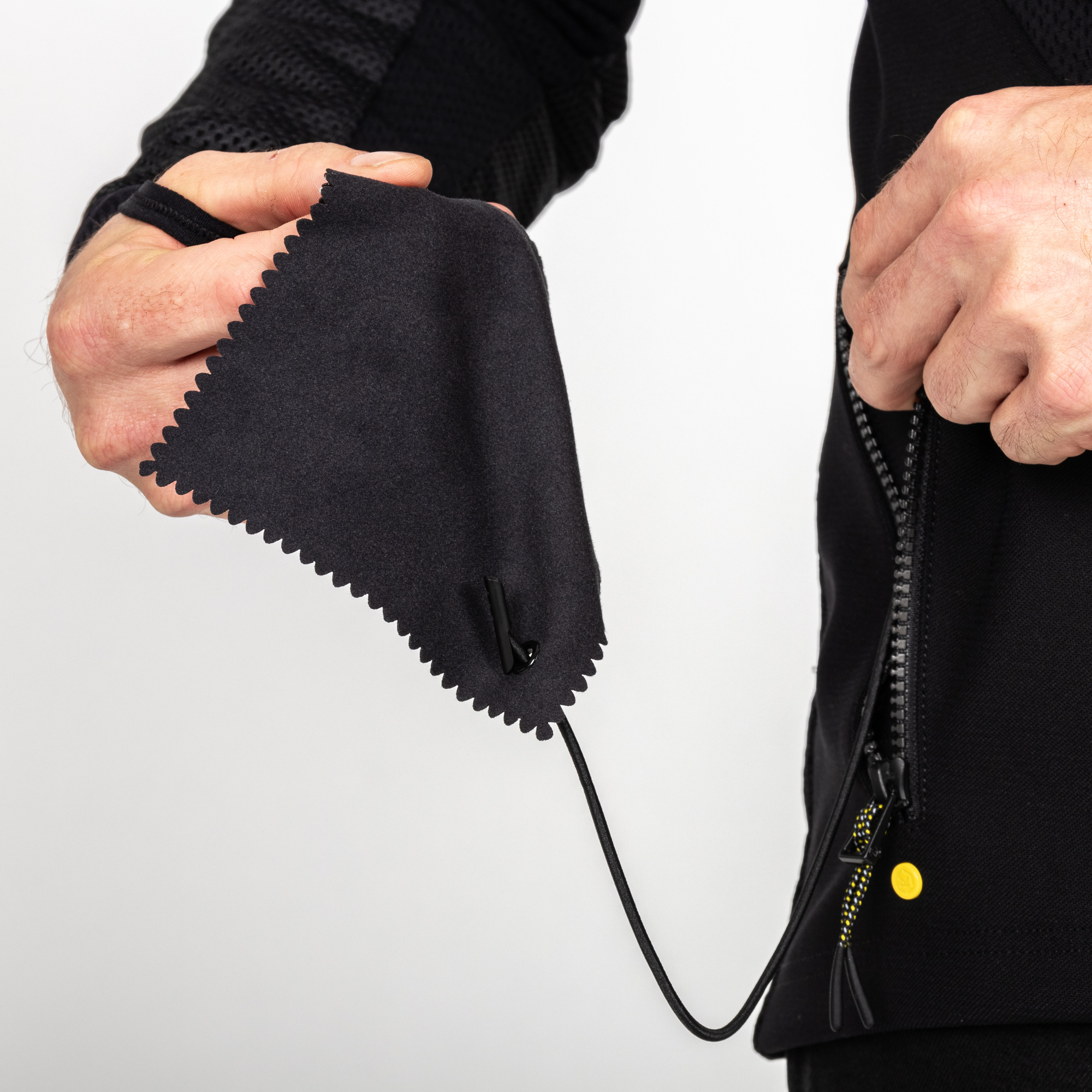- 2 poches extérieures zippées avec tirettes réfléchissantes. Chiffon supplémentaire pour la visière inclus.