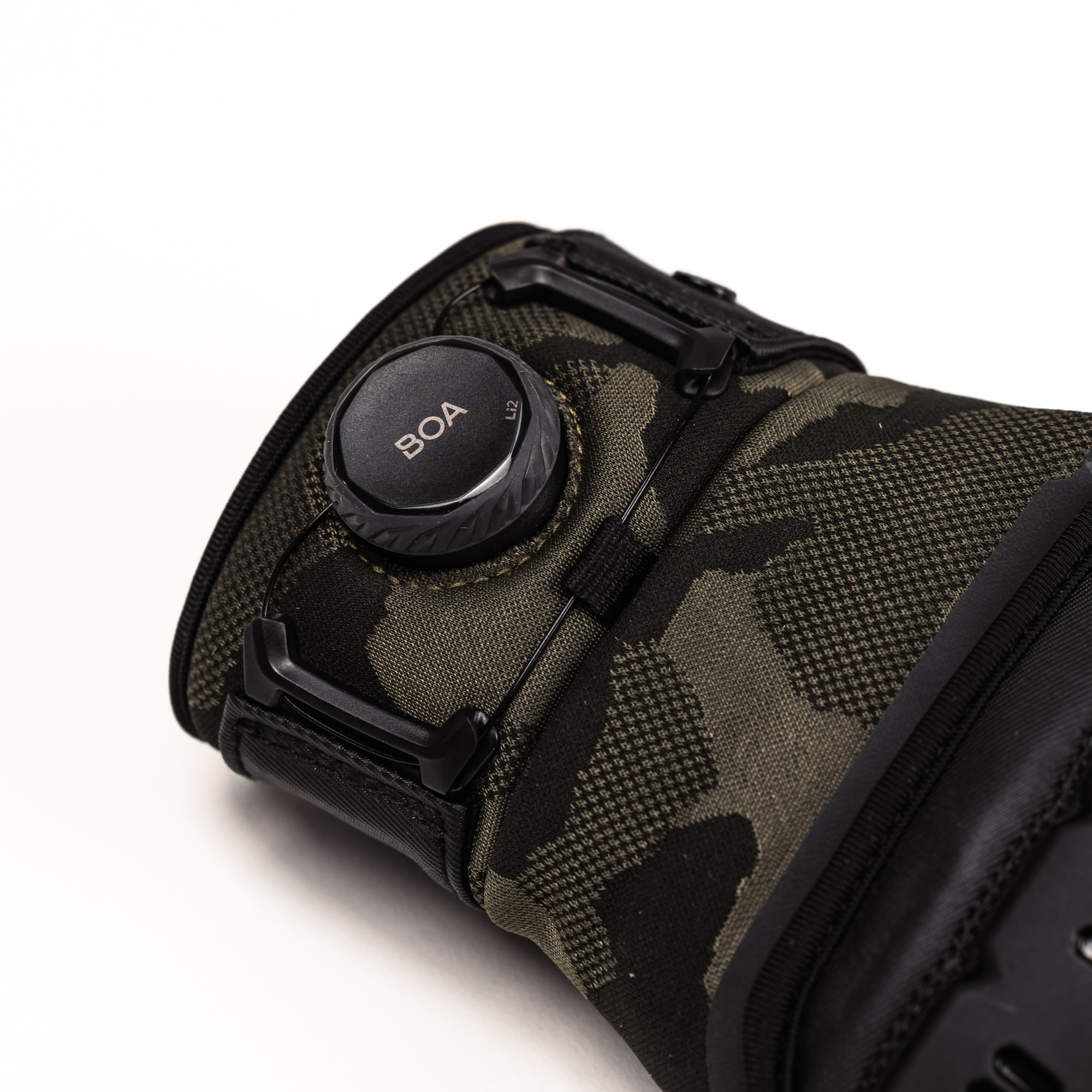 Introducing the revamped Orsa OR4 glove in a beautiful Black and Sage for 2025. The much-loved and best-selling Orsa OR3 has had an update with a green monochrome camo knit. Black Clarino® is used for the breathable palm which has an extra overlay of silicone printed Clarino® for added grip on the controls.