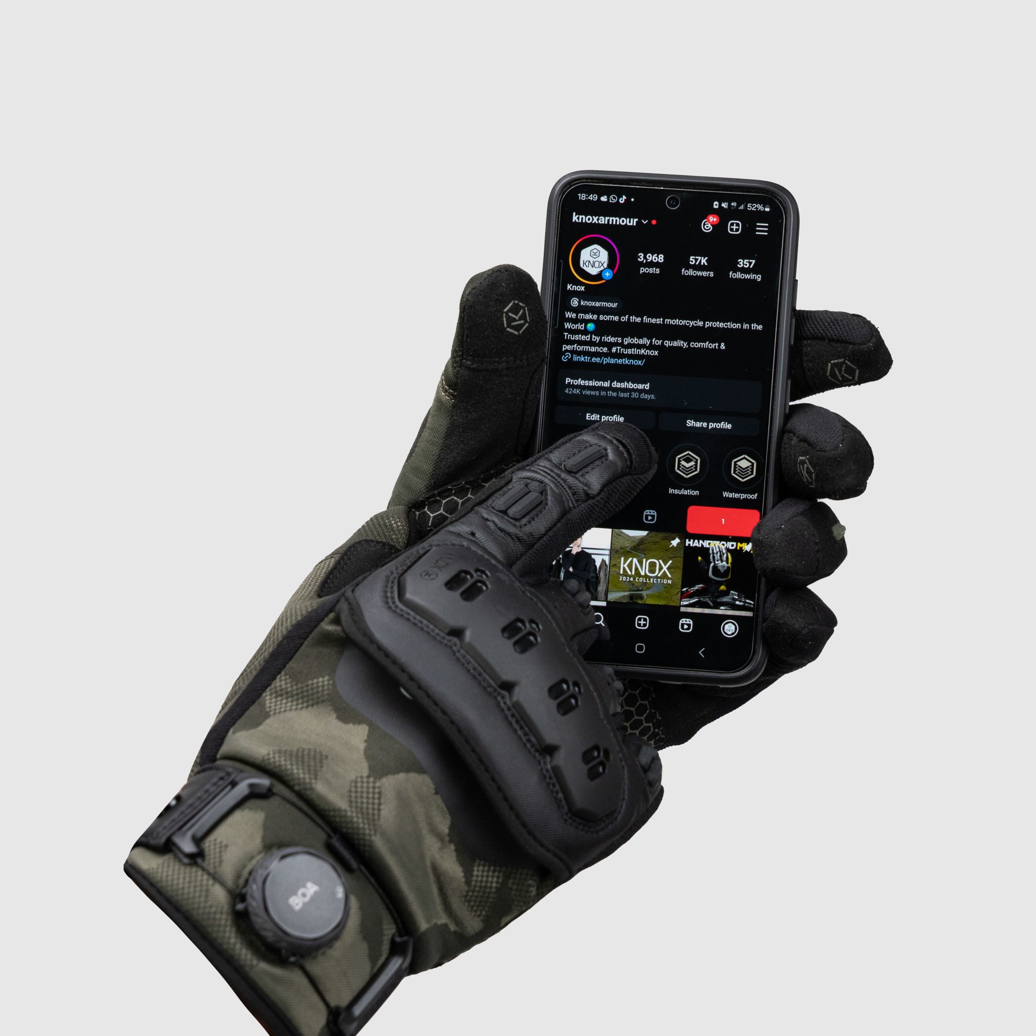 Improved aesthetics include new 3D moulded parts on the fingers for impact and abrasion resistance and a brand-new Knox Micro-Lock filled, plastic floating knuckle. A stylish dark reflective print rests under the floating knuckle, this is subtle during the day but reflects under lights.