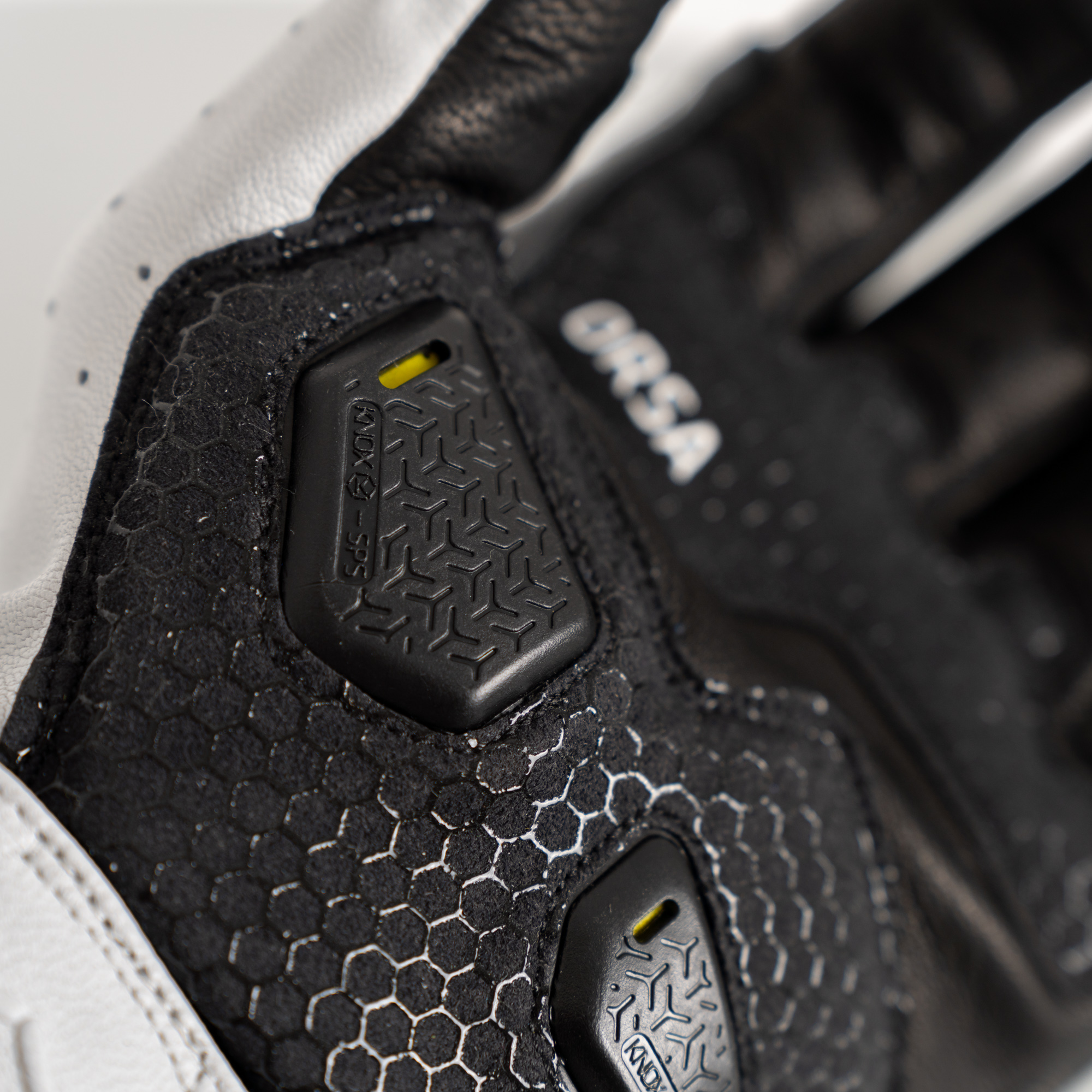 - 特許取得のノックス・インパクト・スカフォイド・プロテクション・システム(SPS)とマイクロロック(特許番号EP1594378)により、レザーパームが路面と接触する際に発生するグラブ効果を排除し、舟状骨骨折の原因となる過伸展のリスクを軽減。