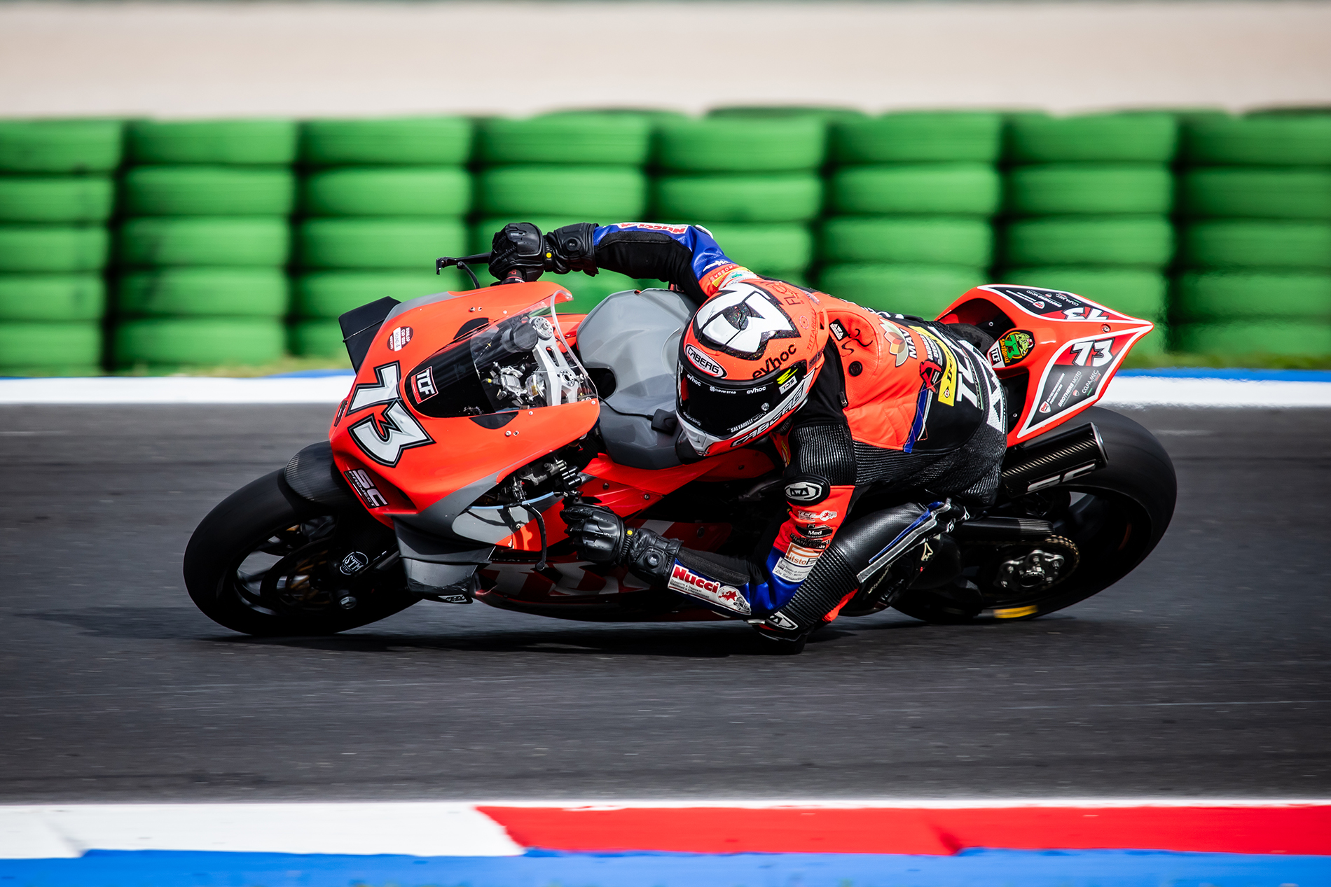 Simone Saltarelli is a seasoned motorcycle racer from Senigallia, Italy, with a strong background in national and international superbike championships. After suffering a serious leg injury at Imola in 2022, he made an impressive comeback in 2023, securing second place in a Superbike race at Misano.
