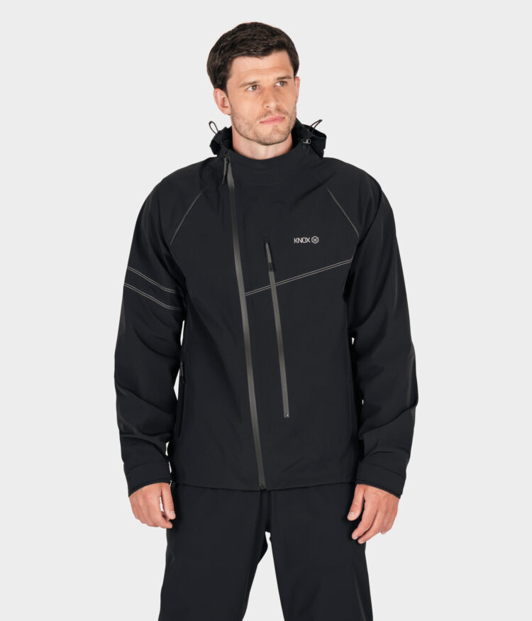 Fully seam-sealed, with bonded cuffs and hem to eliminate stitching, the jacket delivers a sleek, refined finish and enhanced waterproof performance. Designed to sit comfortably over a Knox Armoured Shirt or under any other Knox layers, it accommodates these protective layers without restricting movement. The asymmetric main zipper reduces bulk around the collar so it’s more comfortable, while the zip-off waterproof hood is ideal for off-bike wet weather. A drawcord neckline and Lift & Lock cuff system ensure a secure fit over gloves.