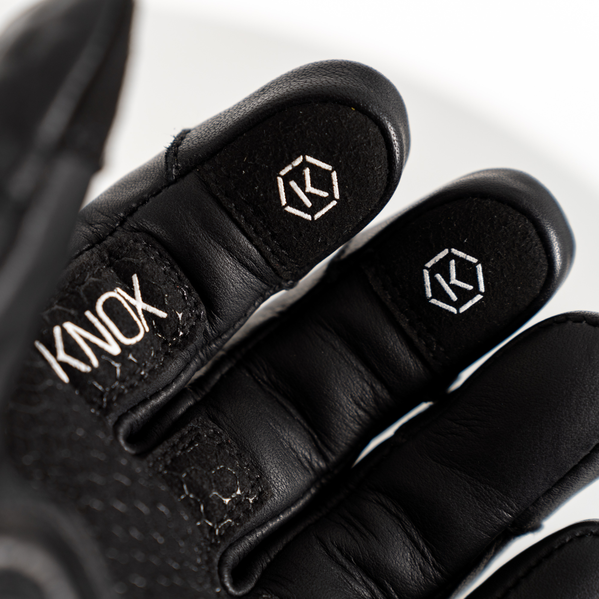 - Patented low-profile Knox Scaphoid Protection System (SPS) on the palm (Patent No EP1594378) to eliminate the grab effect that occurs when a leather palm makes contact with the road, reducing the risk of hyper extension which can be the cause of a broken scaphoid.