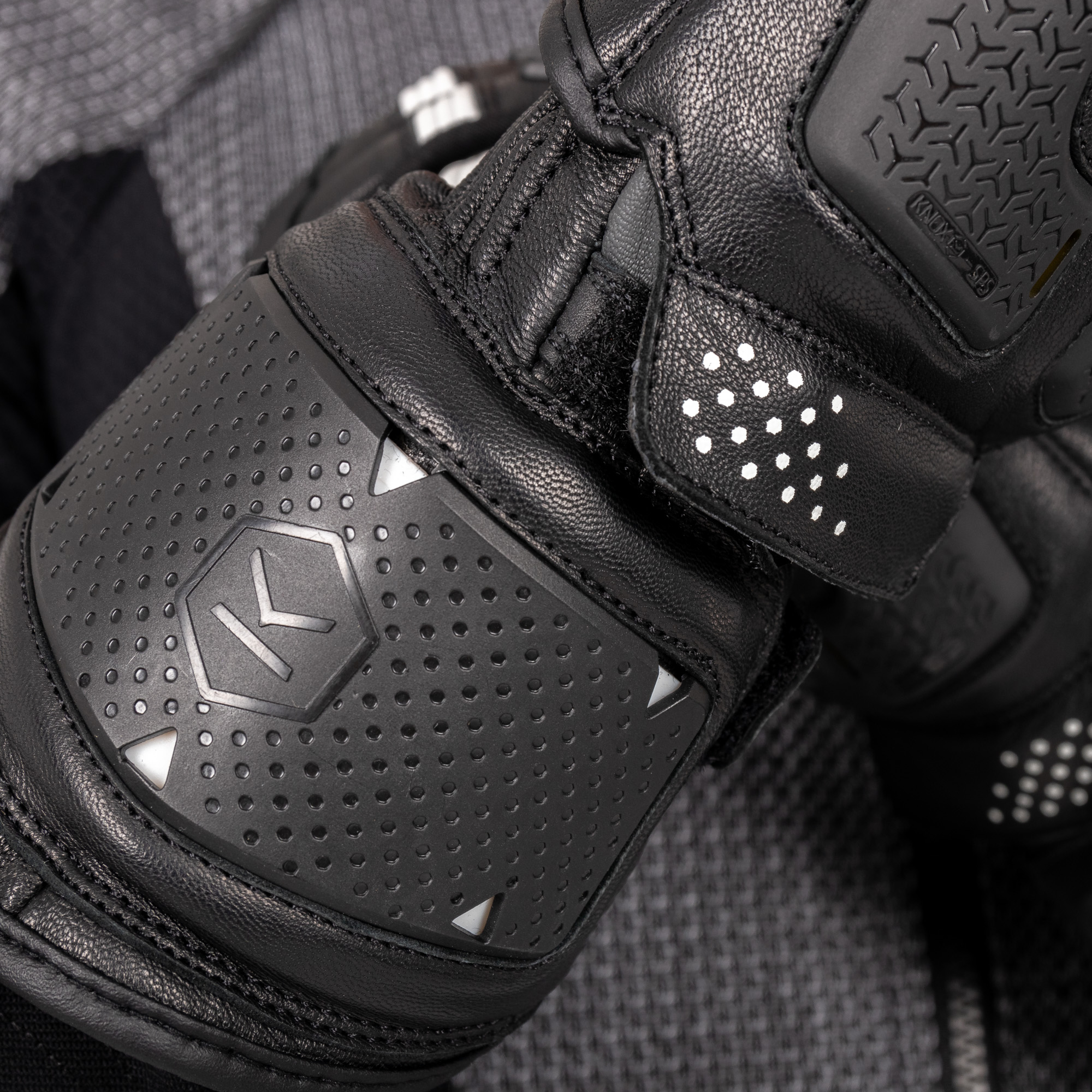 The CE approved Oulton has a 2-part TPU knuckle guard with air channels, that extends over the metacarpals and has added Micro-Lock for impact absorption. A reinforced leather wrap on the edge of the hand delivers added strength.