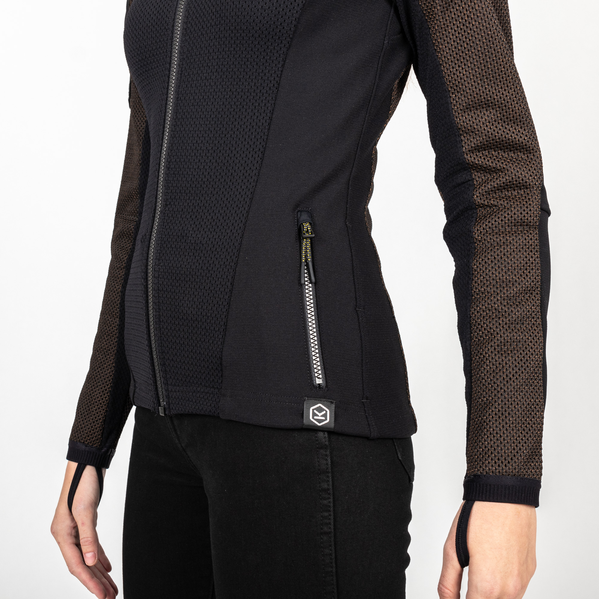 CE approved as a standalone “Class AA” garment with built-in abrasion resistance, the Women’s Urbane Pro Mk3 can be worn on its own in hot weather, eliminating the need for an outer shell. In changing weather conditions, it can be layered with warm or waterproof styles from the Knox Seasonless Collection, making it the core abrasion and armour layer beneath.